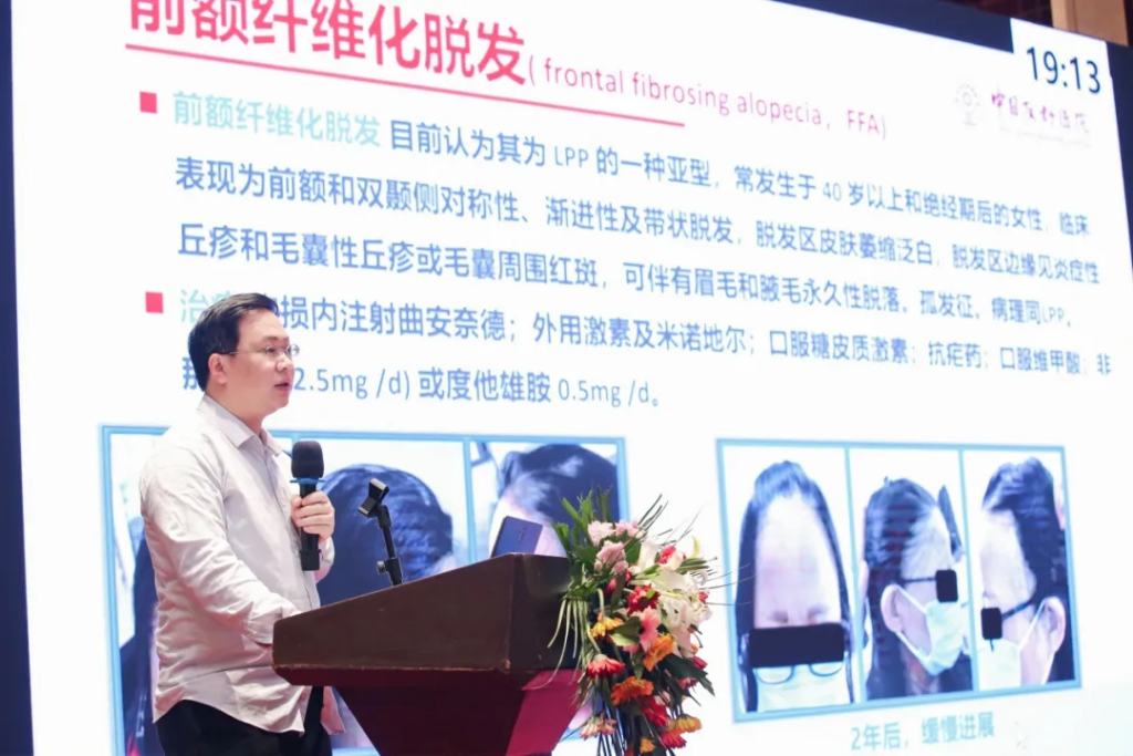 随后延边大学附属医院皮龙泉教授分享了头皮抗衰理念及对策;北京积水潭医院张凡教授讲解了脱发的非手术治疗;上海中医药大学附属岳阳医院郭菲教授讲授脱发的中医药诊疗实践;国家中西医结合医学中心毛发专病医联体运营中心陈育新介绍了互联网毛发专科的发展趋势和未来。